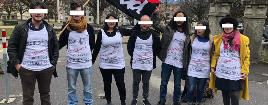 Le vendredi 8 mars 2019, nous avons remis au Conseiller d’Etat Pierre-Yves Maillard, futur président de l’USS, un débardeur blanc sur lequel on pouvait lire : « Boursiers – boursières solidaires de leurs gestionnaires ». Une délégation du personnel de l’office cantonal des bourses d’études et d’apprentissage (OCBE) accompagnée par son syndicat le Syndicat Général de la Fonction … Lire la suite de Boursières et boursiers solidaires de leurs gestionnaires