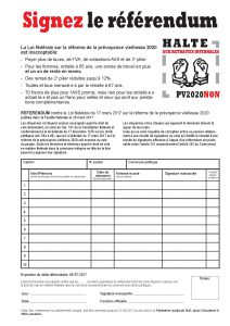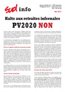 Tous les coups contre Prévoyance Vieillesse 2020 sont bons à porter. Donc, naturellement, il faut profiter de la votation du 24 septembre 2017 pour dire NON aux retraites infernales, à l’attaque contre le salaire socialisé, à la baisse des revenus et à l’allongement du temps de travail que cette opération entraîne.