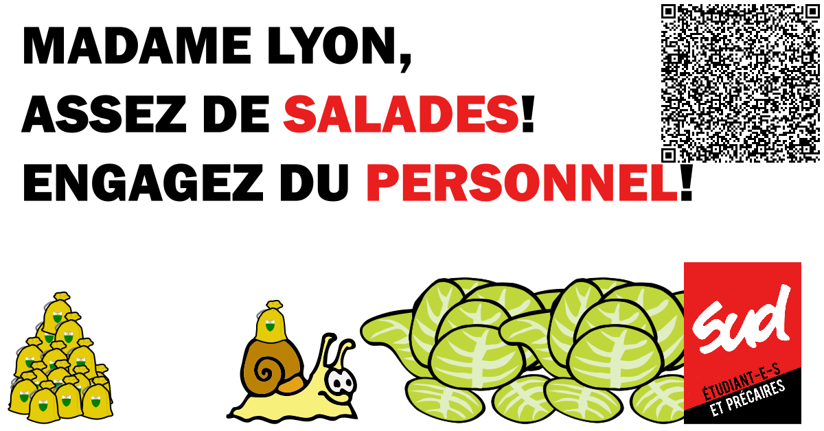 À 12h15, nous appelons les étudiant-e-s et personnes solidaires à se rassembler devant l’office pour une action intitulée : « Arrête de nous raconter des salades ! » Action avec salades, naturellement.