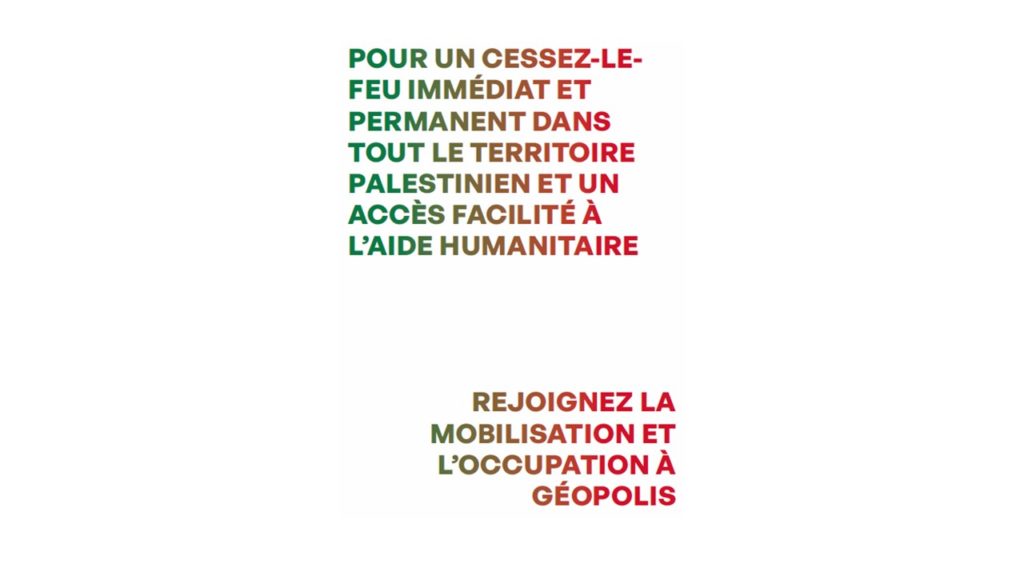 - L’arrêt de la répression contre le mouvement de solidarité avec la Palestine ;