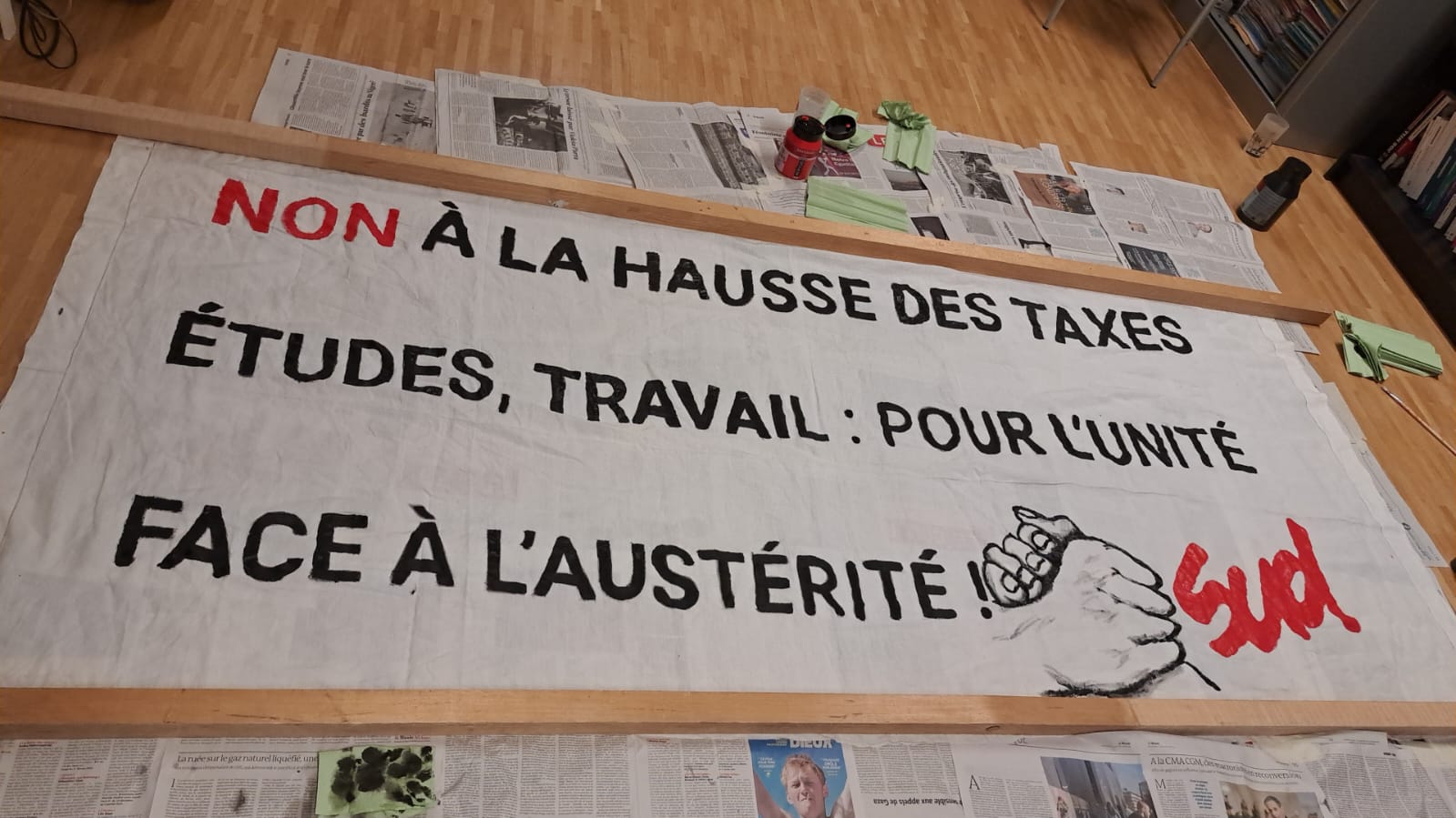 L’unité sur papier ne peut être une finalité, il s’agit maintenant de descendre ensemble dans la rue et de traduire notre désaccord en actes de résistance. Le 1er mai, fête des travailleurs·euses, est une date symbolique de contestation. Affirmant notre appartenance de classe, nous nous joindrons au cortège des travailleurs·euses. Nous les étudiant·es, nous ferons bloc avec comme mot d’ordre :