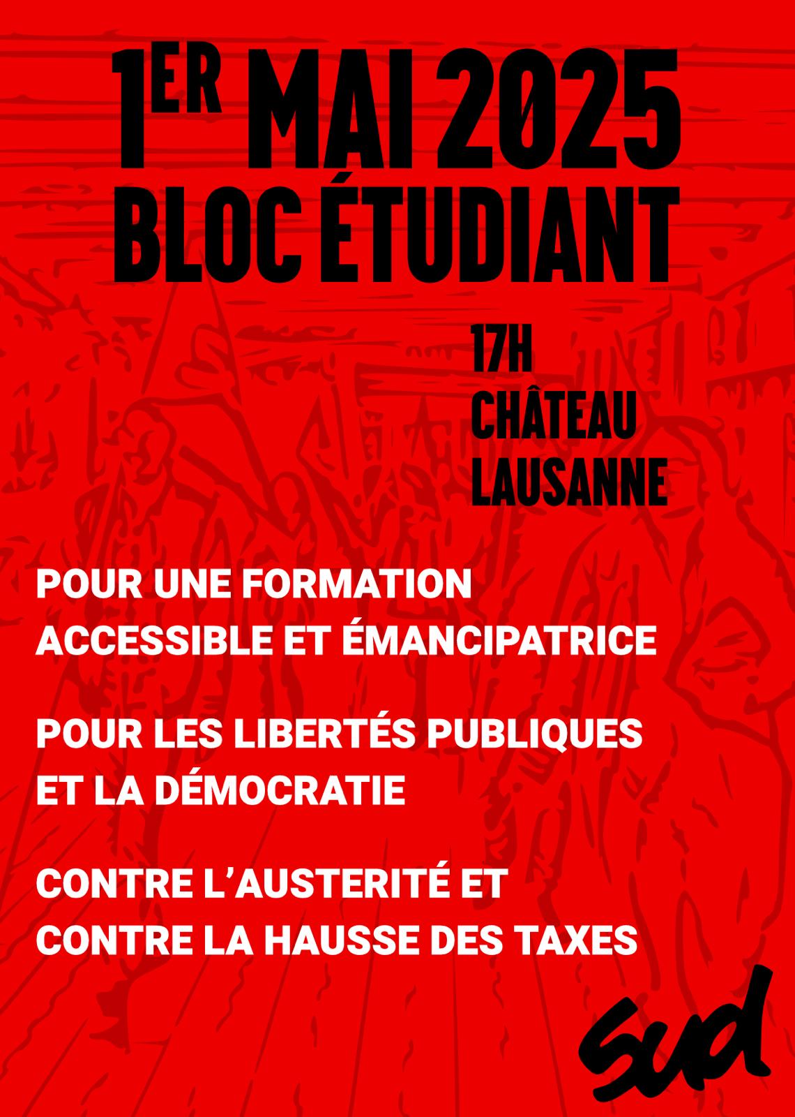 1er mai 2025 : Faisons bloc contre la hausse des taxes d’études et contre l’austérité !