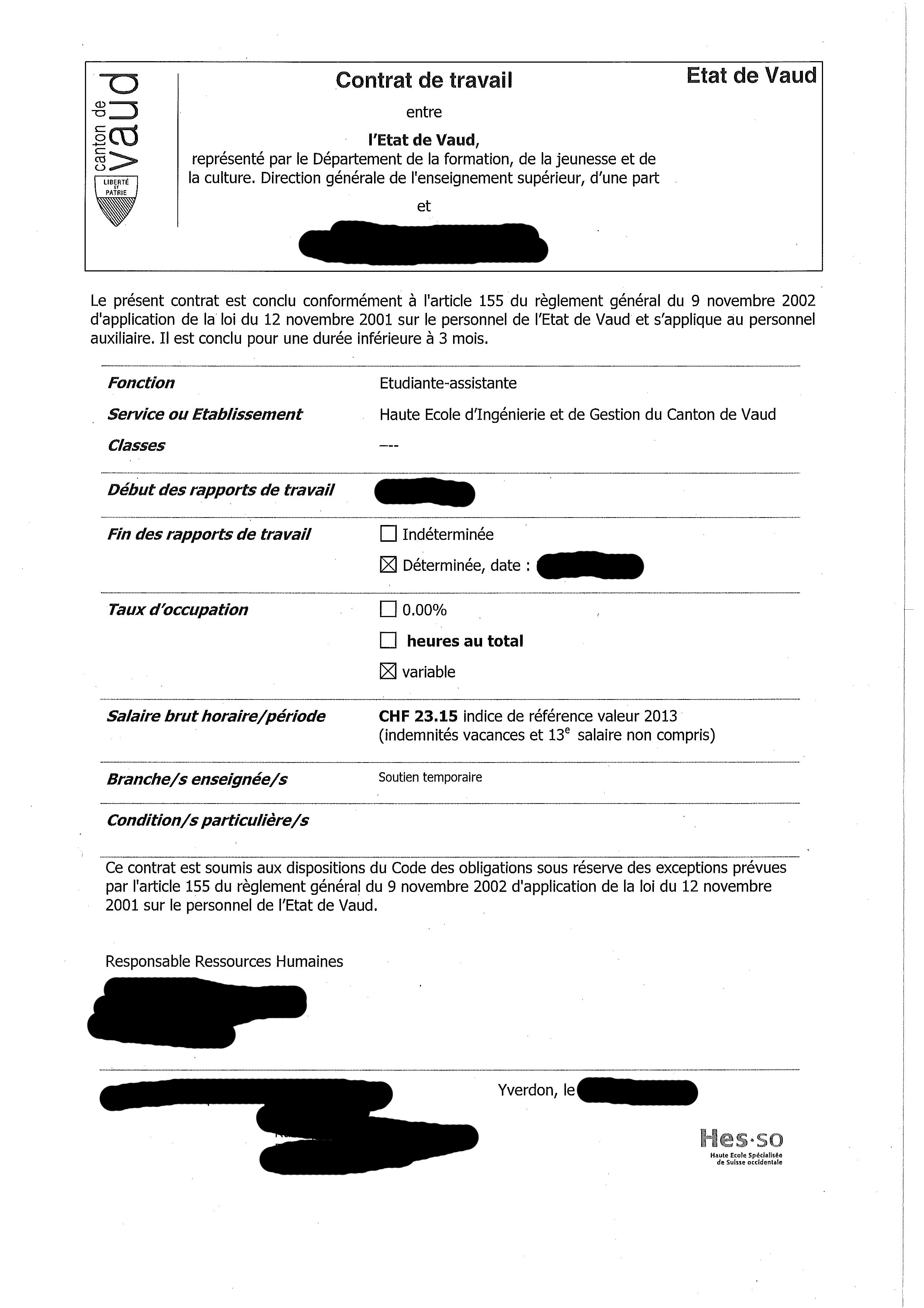 Assistant-e étudiant-e à l’Etat de Vaud : Exemple de contrat