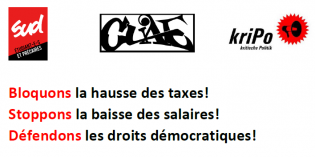 Bloquons la hausse des taxes Stoppons la baisse des salaires Défendons les droits démocratiques Rassemblement sur l’esplanade de l’EPFL – Mercredi 16 mars 2016 dès 12 h Téléchargez l’affiche en PDF Téléchargez le tract en PDF Cette mesure est un effet direct du plan d’austérité porté par le Conseil Fédéral qui vise à amputer le […]